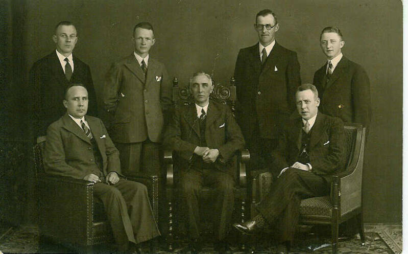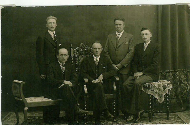 Staand vanaf links: H.Velthuis, N.N., H.Velthuis, H.Leuwerink, H.Rosens en J. Kaptein