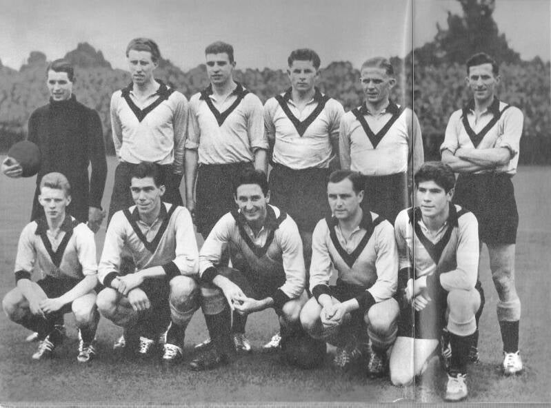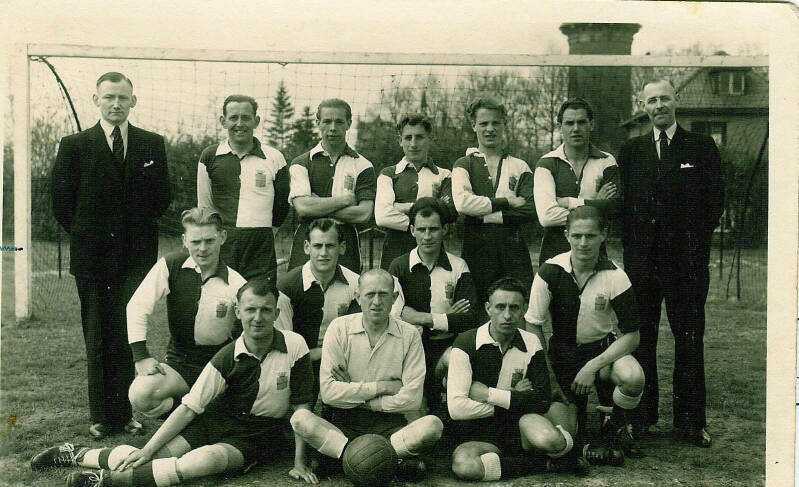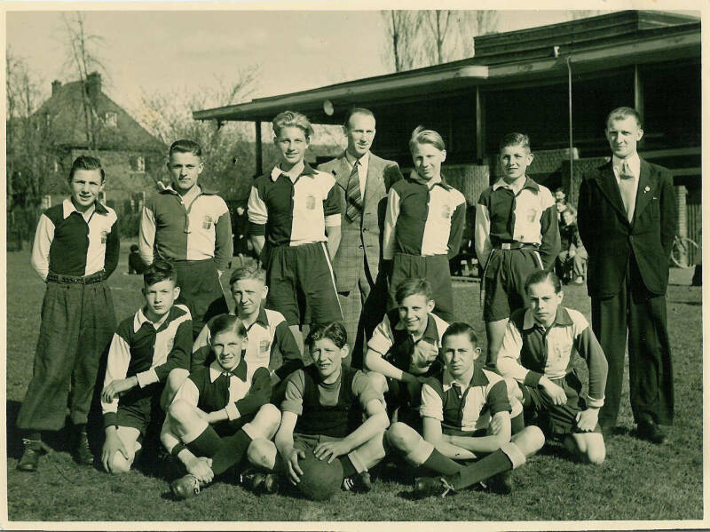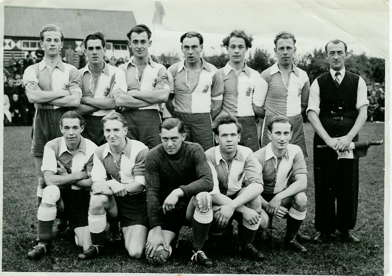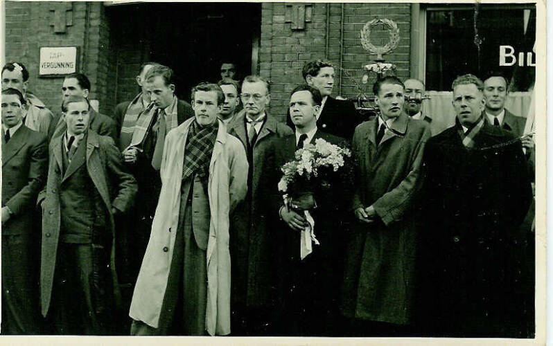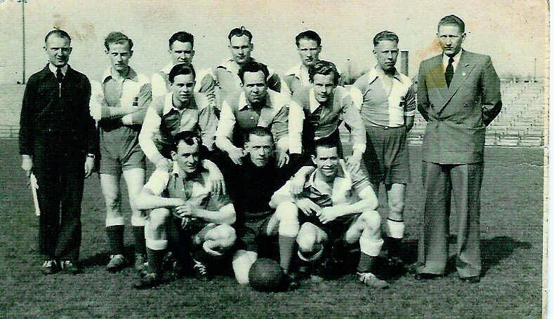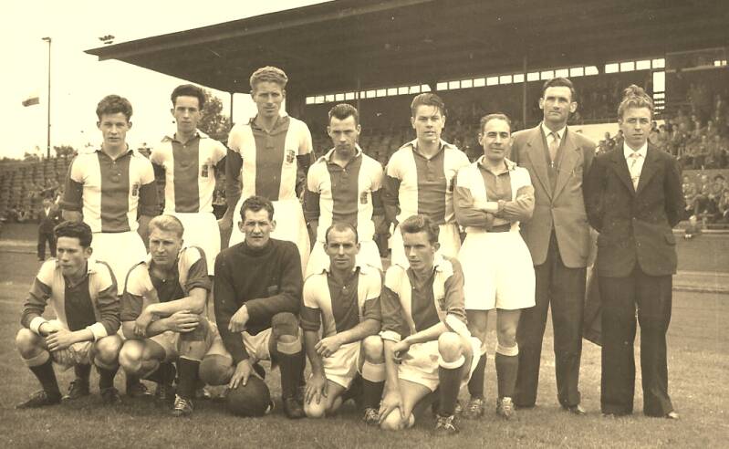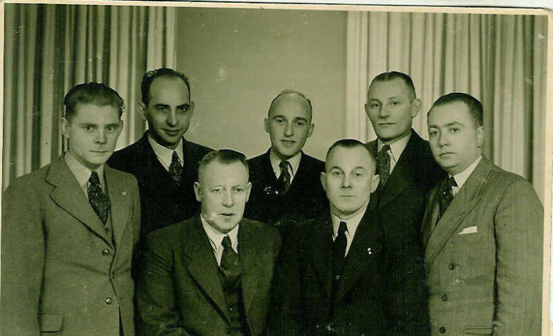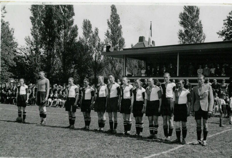 Staand v.l.n.r. Gerrit Meers, Albert Kollerie, Jan Visser, Wolfram Arnthof, Gerrit Peters, Johan Nijhuis. Herman Stuvenfolt, Gerrit Postma, Willem Oude Alink, J.Jurissen en Freek de Vries.
