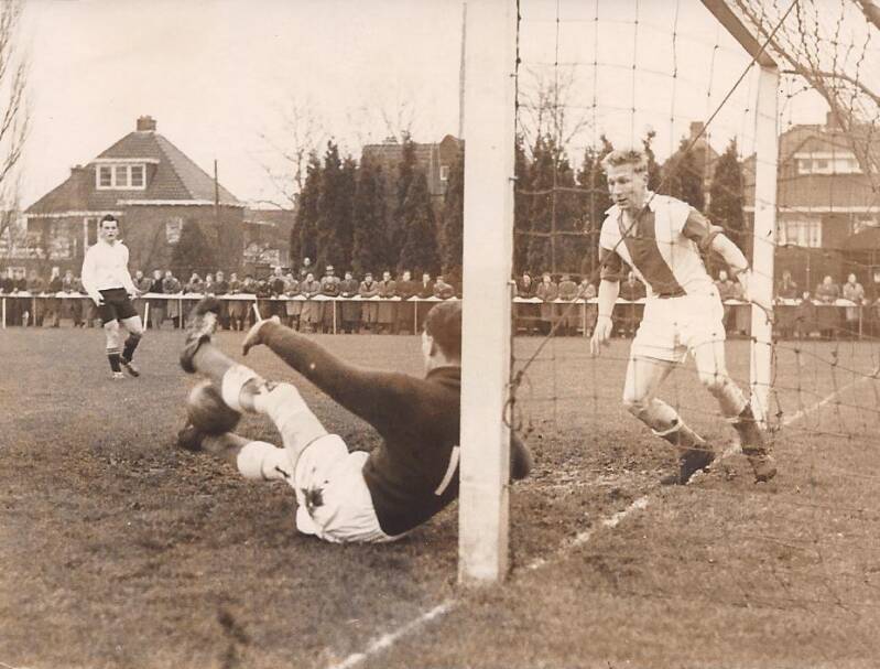 Spelmoment seizoen 1972-1973. Henk Nijkamp haalt uit.